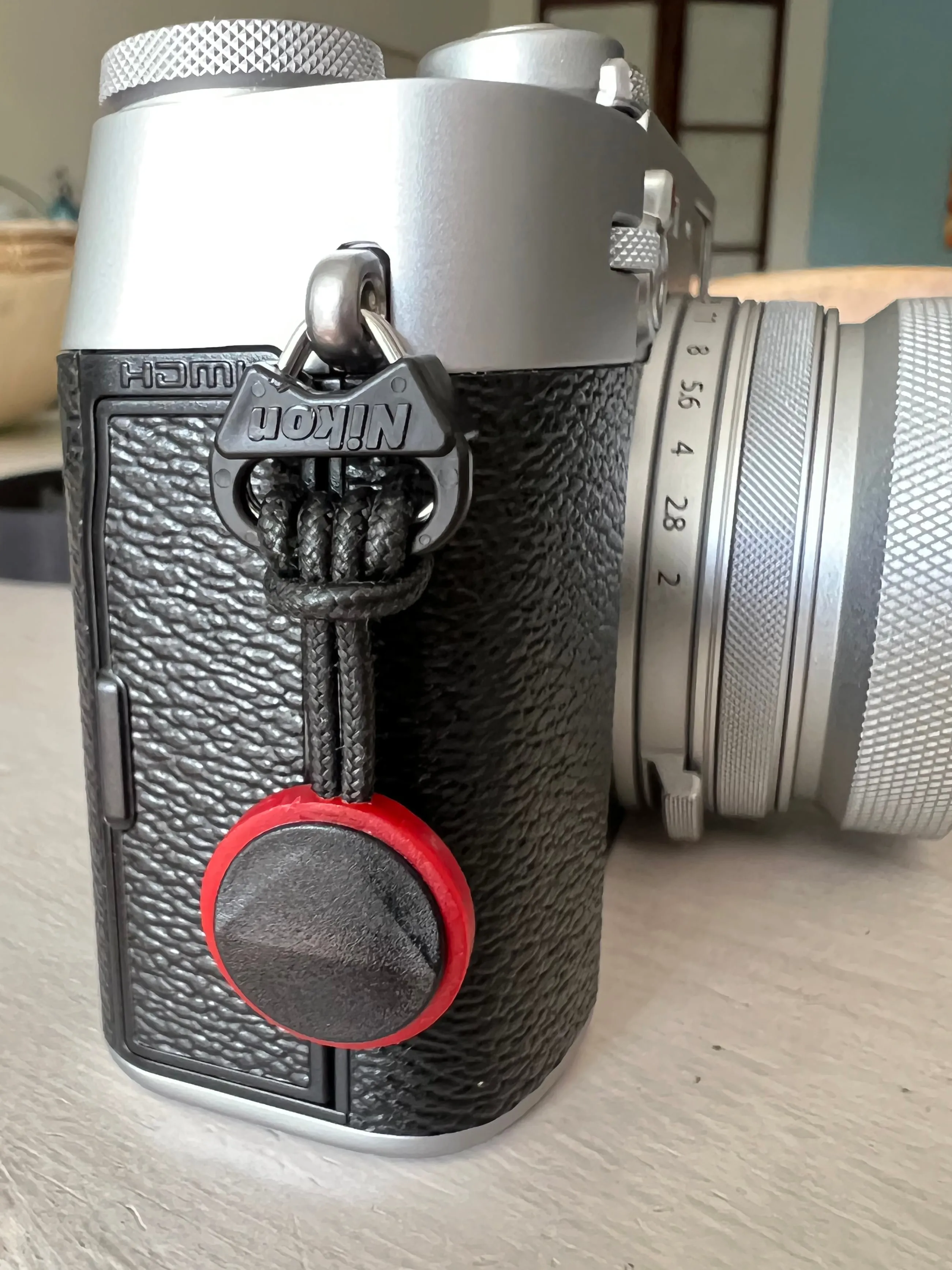 I treated myself to a Fujifilm X100V this summer and I was disappointed to discover I couldn’t directly attach a Peak Design anchor link to it, the body lugs are too small to fit an anchor link (1).