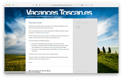 Well, it provides an easy point of entry to these travelogs without being included in my weblog per se. Moreover, Tumblr has evolved quite a bit since its inception, and I got weary of loosing all the data I trusted to it over the years. So, I took out to generating a static version of the weblogs without all the Tumblr layers. I’m not quite there yet, but it’s coming.